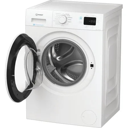 Keeping on top of your family's laundry is easy with this Indesit Push&Go Steam washing machine. Available in a pristine white finish and with an 8kg capacity, it's designed help you get the washing done quickly and efficiently. Our Push&Go with SteamTechnology softens clothes and reduces creases by steaming laundry at the end of the cycle, taking less than an hour to finish. There are also five other rapid cycles, each lasting less than an hour, that are tailored to specific fabric types, ensuring exceptional care for all your clothes while saving you time. If you can't wait around, the Fast Mode option lets you cut the wash duration by 50%*. And if you only have a few items to wash, the Express 14 cycle only takes 14 minutes - perfect for last-minute washing! Not only is this washing machine speedy, it's gentle too. The dedicated Wool Care cycle means you can relax knowing that your family's woollens will always be safely washed, keeping them as soft as new. And with an A energy rating, you’ll save on electricity without compromising on cleaning performance - making it perfect for any modern family home. *Respect to the cycle without activating the Fast Mode option, the washing time is reduced for “Mixed” and “20°C” by 48%, “Cotton” by 38% and “Stain Removal” by 13%.